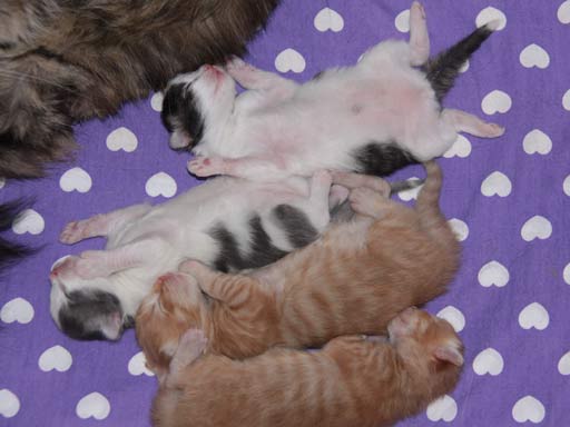 Deze tweede week zijn de oogjes van alle vier de jongens open gegaan. Die van Ceiro waren al ver open aan het eind van de eerste week, maar nu kunnen ze alle vier hun oogjes openhouden. Wat zijn ze al groot (niet vergeleken bij het drietal van Like, maar wel als je kijkt dat ze pas 2 weken oud zijn!) Ze groeien goed en zijn al best sterk. Het zijn vier prachtige mannetjes en we kunnen niet wachten tot we hun ook de hele tijd om ons heen hebben en ze lekker op schoot kunnen nemen. want wat zijn ze lekker zacht!
