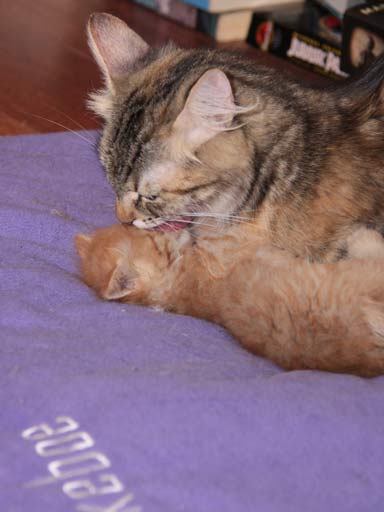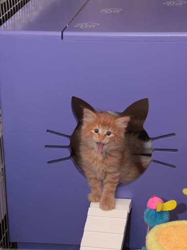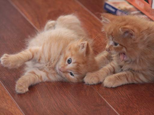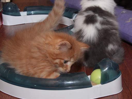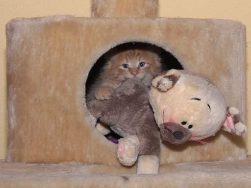Vrijdag waren Chico en Ceiro uitgebroken uit de ren. Ze vonden het wel welletjes om die kleine ruimte tot hun beschikking te hebben en klommen steeds in de ren. We hebben de ren dan ook maar open gezet, want ook zaterdag bleek dat de heren de hele kamer wilden ontdekken. 's Nachts doen we nog wel de ren dicht, voor hun eigen veiligheid, maar dat zal niet lang meer duren voor die hele ren weg zal gaan. De vierling van Aimi ontdekt elke dag wel weer een ander speeltje of dingetje in de kamer en het is leuk om te zien hoe de drieling van Like ze wegwijs maakt. Met zijn zevenen zijn ze lekker aan het ravotten, maar ook kunnen ze bij elkaar slapen of met elkaar stoeien. Het is een gezellige beestenboel in ons huis. Moeder Aimi blijft maar roepen, maar er wordt steeds minder goed geluisterd.