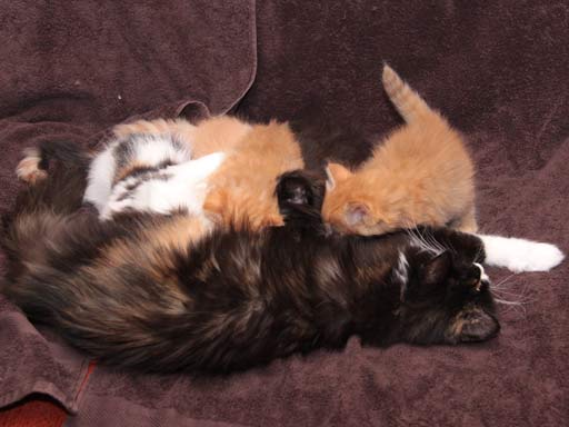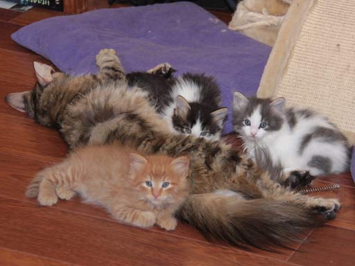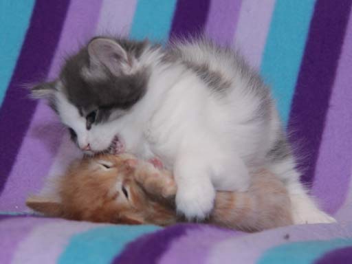 Ze groeien goed en het worden prachtige katers om te zien. We zijn zo trots met ons eerste nestje van Aimi. En op haar, want wat doet ze het goed!!!
