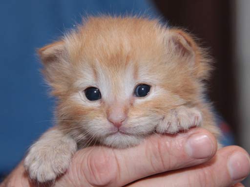 Omdat we zo vaak melk met een spuitje geven per dag en zo veel zorgen hebben om dit lieve kleine mannetje, is de keuze op een gegeven moment snel gemaakt om Charu bij ons te houden, als de kittens oud genoeg zijn om te verhuizen. De keuze is totaal niet moeilijk... Al toen we Roby uitkozen (onze grijs-witte HTK kater) gingen we eigenlijk op zoek naar een rode kat, het liefst een poes die we Ruby wilden noemen. We werden verliefd op Roby en dat was dat, maar nu opeens hadden we een rood katertje uit een eigen nestje...! Daarbij was Charu helemaal op ons gericht. Hij spinde continu erg hard als we hem op schoot namen om hem weer eten te geven en dat was echt heel bijzonder.