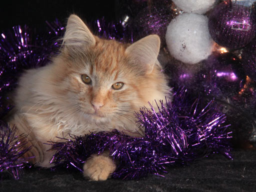 Charu komt nog dichter in zijn vacht te zitten als het wat kouder wordt, eind 2011. Hij is helemaal "ontploft" qua vacht. Hij heeft een heel dikke, lange vacht en is lekker zacht. Hij maakt me niet meer wakker voor een knuffeltje, nee, hij wil 's nachts in mijn benen bijten. Een beetje een rare gewoonte en ook niet zo prettig, maar het is moeilijk echt boos op hem te worden, want hij spint er zó hard bij... Ik hoop dat het lukt om hem dat af te leren, of dat hij er gewoon mee stopt zodra hij gecastreerd wordt. Eind januari 2012 staat het op de planning dat hij onder het mes moet. Spannend hoor... En dan maar afwachten of het klopt wat ze zeggen: dat hij nog aanhankelijker wordt als hij eenmaal geen balletjes meer heeft. Dat zou wel enorm fijn zijn, want het is al zo'n lieverd!