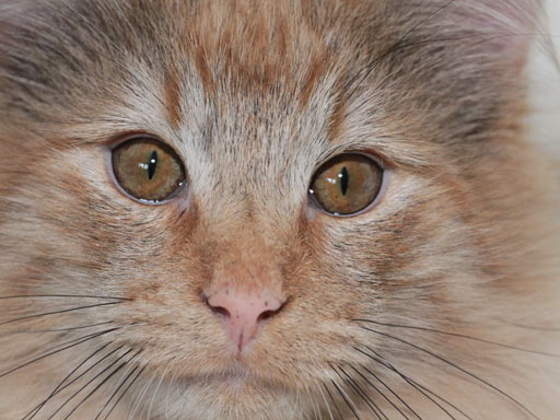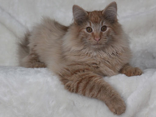 Charu is een geweldig mooie kater met zijn dikke, dichte erg zachte vacht en door dat rood komen hier en daar wat zwarte haartjes. We hebben een heel speciaal katertje in ons huis... hij is waarschijnlijk een tortie-man. Zeer zeldzaam... Maar op zijn stamboom hebben we gewoon red-tabby laten zetten. We willen toch niet met hem fokken en ook naar shows zullen we niet met hem gaan. Het is een prachtig gezicht, die malle kop van hem en dan die paar zwarte kussentjes. We zijn erg benieuwd hoe hij uit gaat groeien, maar we zijn er vrij zeker van dat hij een Prachtkater zal worden!
