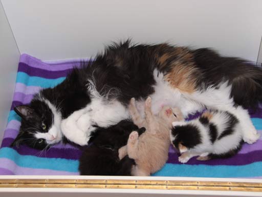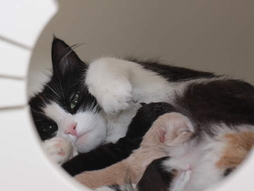 In maart 2009 werd Like weer krols voor het eerst sinds ze met de pil was gestopt.  Maar haar logeerpartij van begin april heeft niets uitgehaald en ze bleek na een aantal weken weer krols te worden. Eind mei 2009 was het dan eindelijk zover, er vond een geslaagde dekking plaats met Cat Nettery's Boromir en na 9 spannende weken beviel Like van drie prachtige kittens, die wij Aydan, Alvyn en Aimi noemen (zie de pagina  Barn voor meer informatie en foto's van ons nestje met kittens). Wat een gezelligheid brengt dat in huis en wat zijn het mooie beestjes. We hebben besloten dat we Aimi gaan houden en haar een liefdevol thuis willen bezorgen en de mannetjes gaan elders wonen als ze groot genoeg zijn. Het is echt geweldig om te zien dat Like niet alleen een lieve poes is voor ons, maar ook een geweldige mama voor haar kroost. Puur genieten!