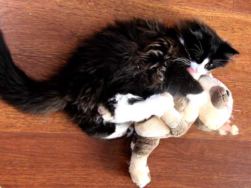 Daarnaast zijn de kleintjes lekker aan het groeien, lekker aan het stoeien en af en toe ook heerlijk met ons aan het knuffelen. Aimi vindt het lekker om gewoon naast je te komen liggen en zich dan te laten vertroetelen. Als je geluk hebt, gaat ze dan ook nog heerlijk hard spinnen. Alvyn vindt het nog steeds best om opgepakt te worden als een mensenbaby, hij laat zich dan ook heerlijk knuffelen.