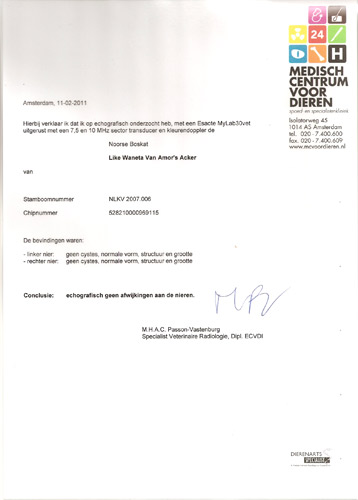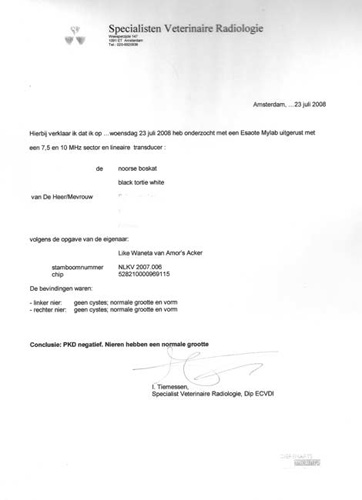 We hebben Like op 23 juli 2008 laten testen op Hcm en Pkd: