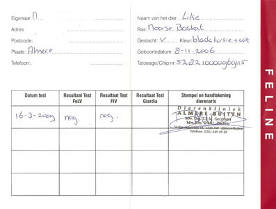 We hebben Like op 16 maart 2009 laten testen op Fiv en Felv: